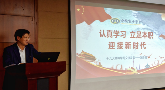 随后,党委书记张宏图同志以“认真学习 立足本职 迎接新时代”为主题为各位同志梳理了十九大报告的主要内容,围绕党的十九大的主题、十八大以来我国发生的历史性成就与变革、新时代党的历史使命、习近平新时代中国特色社会主义思想、“两个一百年”奋斗目标的战略部署、坚定不移推进全面从严治党等十个方面,对党的十九大精神进行了系统、全面、深入的讲解,同时结合个人阅读积累及学会工作实际,尤其是针对“振兴实体经济”和“坚定文化自信”两个方面,对今后党委工作和党建工作提出了要求和希望,既有全面又有重点,既有理论高度又有实践案例。张书记在党课宣讲过程中,旁征博引,引经据典,不时向与会同志提出问题,引发各位深入思考,为各位党员同志带来了一场高质量、高水平的党课。