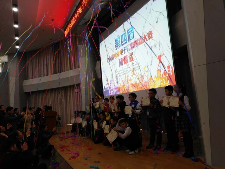 挑战赛初中组的郑郅程、杜浩然两名同学获得“最佳团队奖”,赢得1200元梦想基金。小学组的战培源、程奕飞、夏维一三名同学获得“未来创新人才奖”赢得600元梦想基金。初中组的王明琪、王孟哲两位同学获得“未来挑战人才奖”,赢得300元梦想基金。
