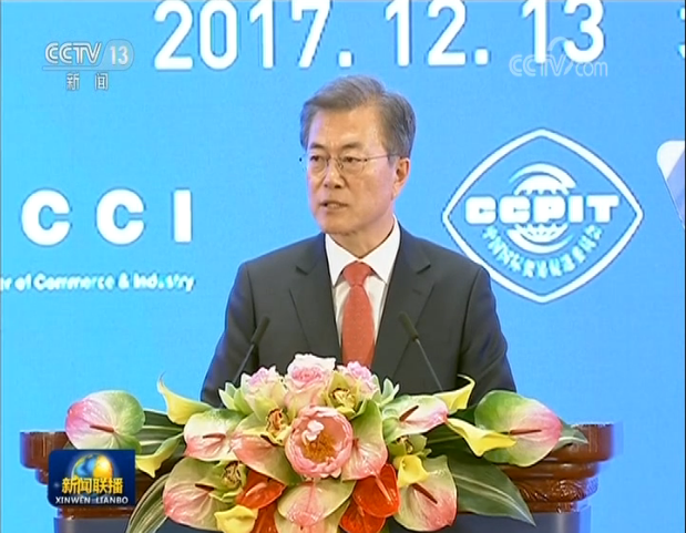 2017年12月13日,中韩商务圆桌会议、中韩商务论坛在北京钓鱼台国宾馆举行,国务院副总理张高丽、韩国总统文在寅出席会议并在论坛上发表主旨演讲。