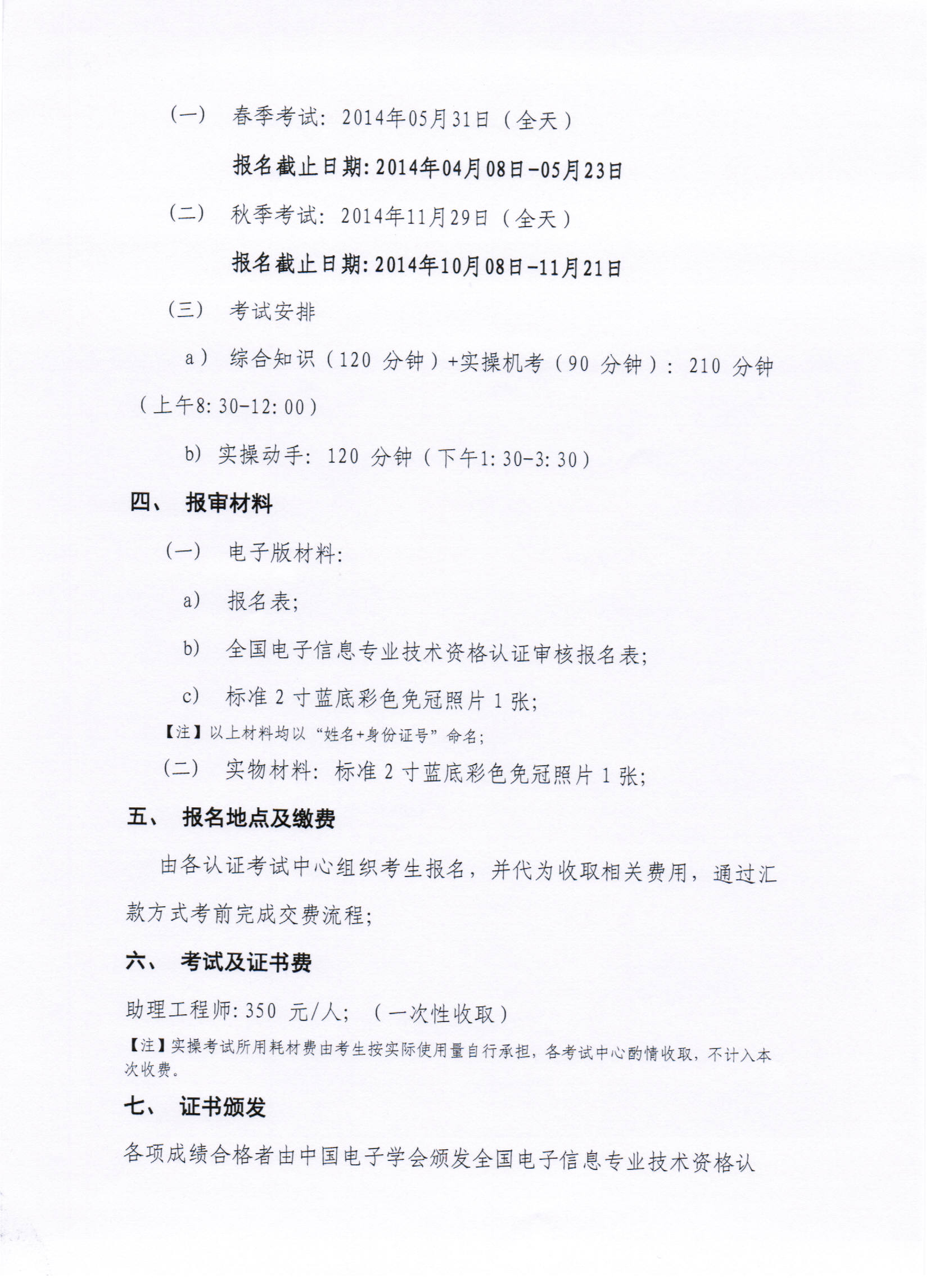 关于2014年电子设计工程师认证报名及考试时间安排的通知